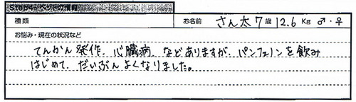 てんかんでお悩みのさん太くんの飼い主さまから、嬉しいご報告が届きました!